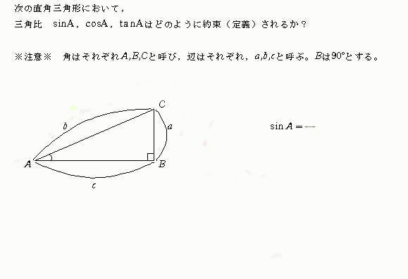 つまり,多くの教科書が,「当初は,既存の直角三角形において,辺と角を論じてゆきましょう。分かりやすいから。」ということになっている。その後,正確な定義に移ってゆく。