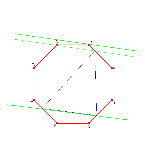 | 正八角形の”頂点”に3点があり,三角形を作るならば,ひょっとして中学生向けの問題?ってことになりますが,それがそれ,ここは東京工業大学なんですよね〜。問題は,”周上”の点なんですよ。コレが曲者〜〜〜。 |