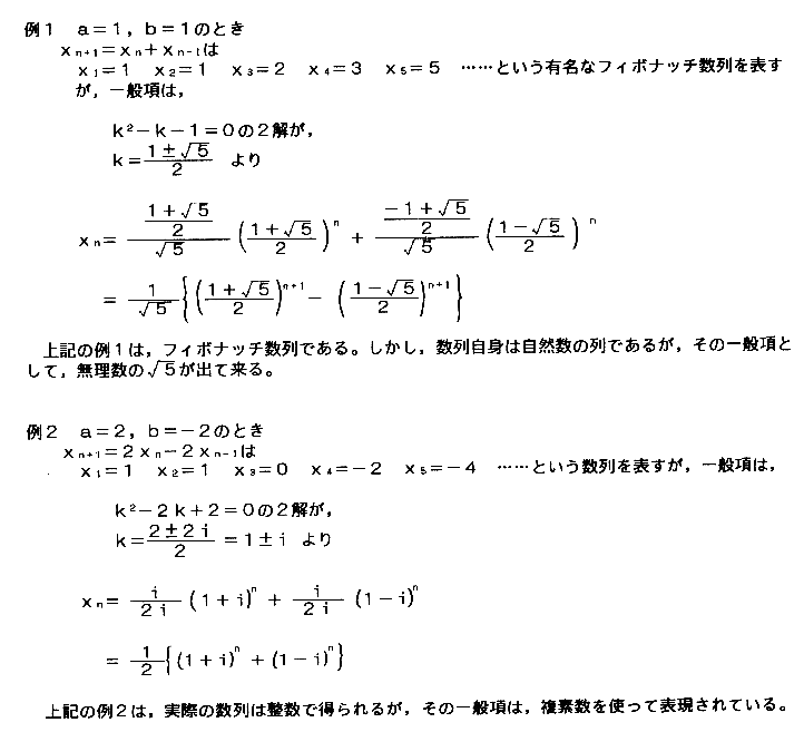 得られたりする漸化式について一般項を求めてみると,まったく関係の無い,無理数や,複素数まで
